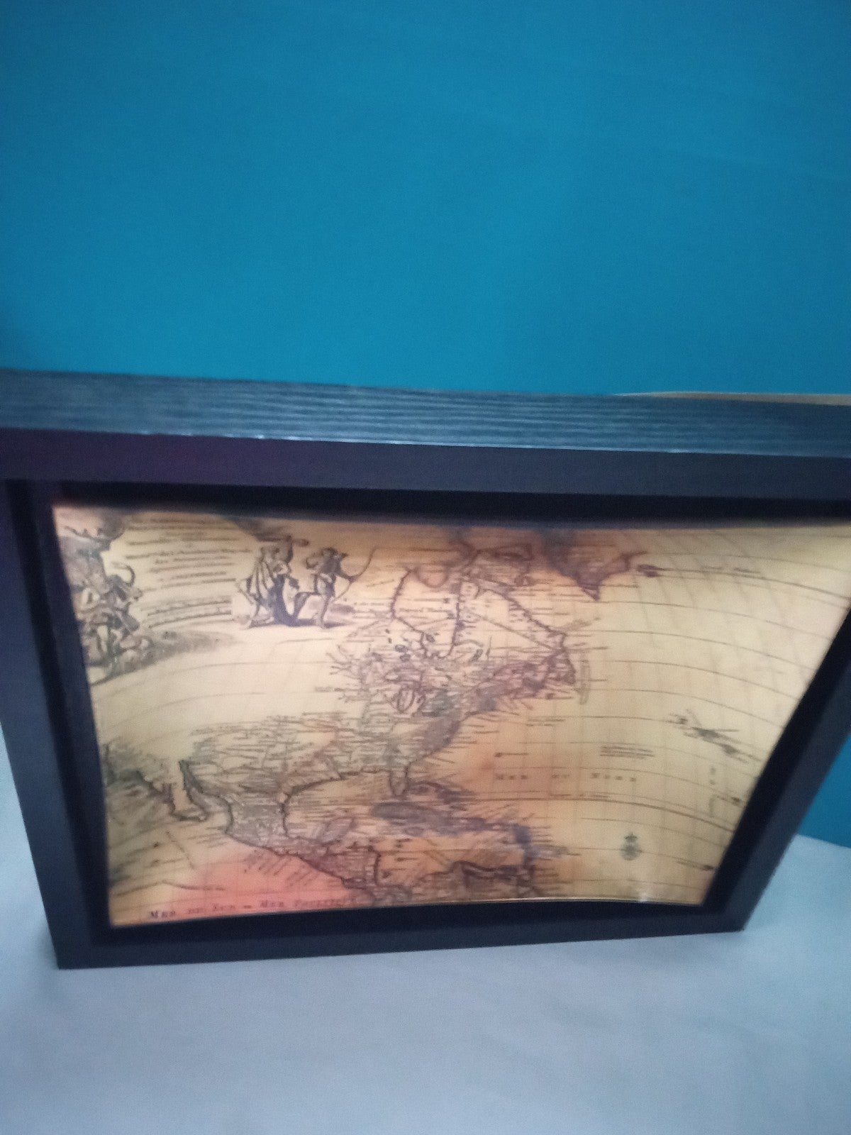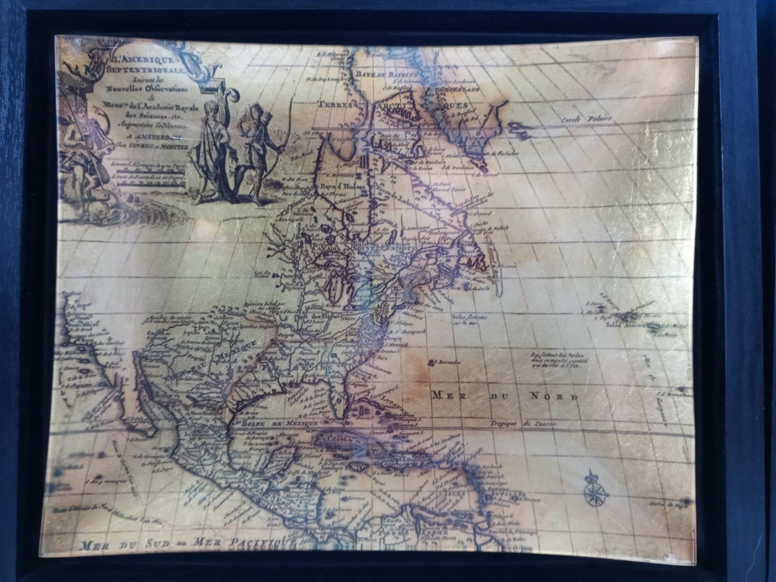 Collectible glass Wall art of Old World Map. Gold Glass is curved in.