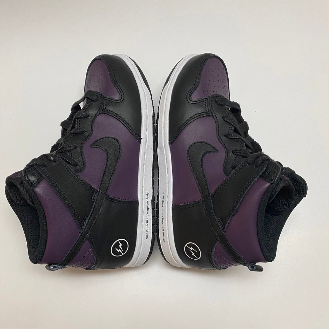 Nike Dunk High PS ‘Beijing’ brings back one of the three ‘City Pack’ colorways released by Hiroshi Fujiwara and Nike in 2010. Unlike the original, this reissue features symmetrical color blocking on the leather upper, highlighted by a dark purple base with contrasting black overlays. Fragment’s lightning bolt logo is stamped in white on the lateral heel, while the shoe’s development style number is inscribed in fine print across the midsole