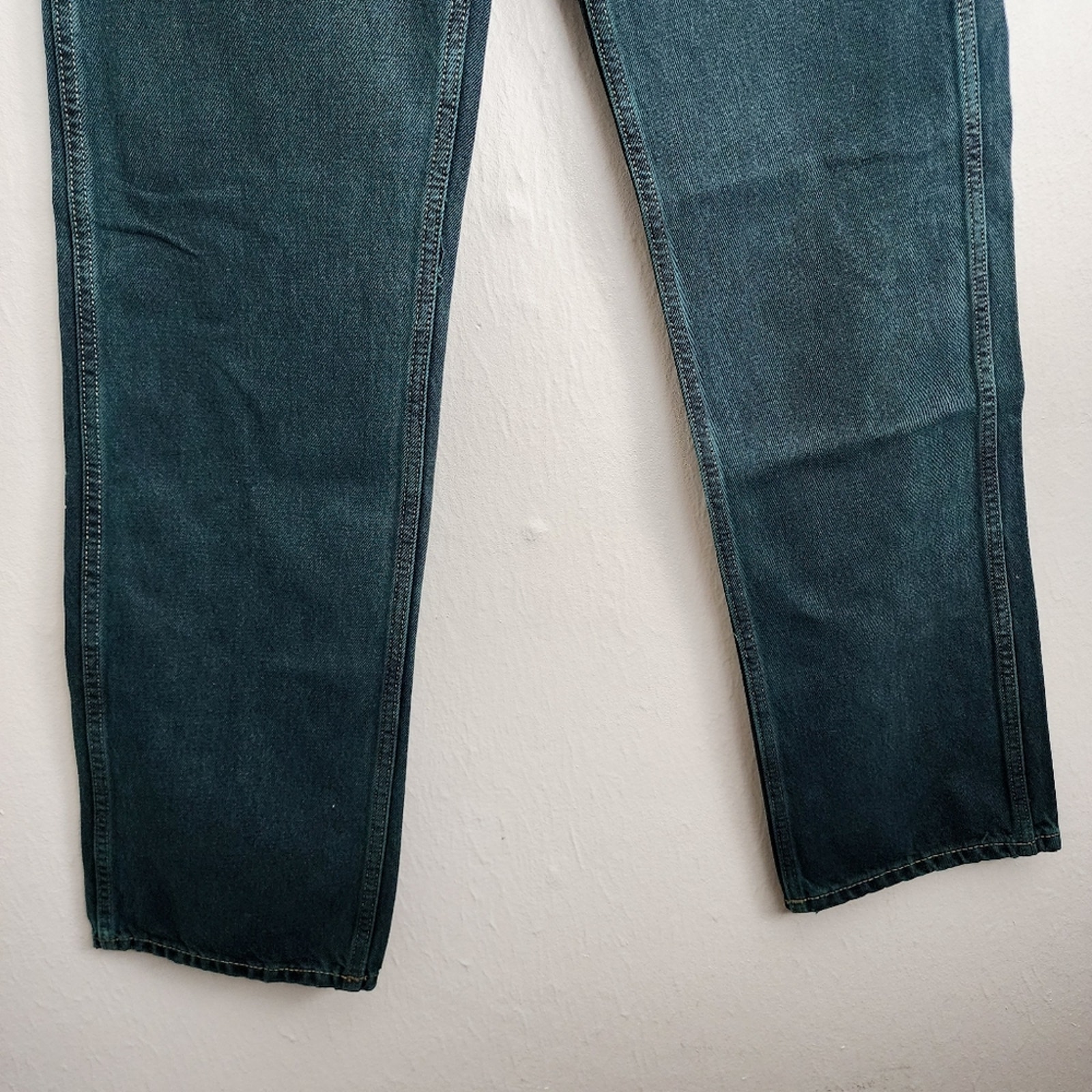 This style is their take on the iconic relaxed, long-leg denim of the 1990s. The fit features a refined high-rise top block and a straight, loose leg with an extended inseam. The beautiful dark green color provides a sophisticated twist on classic denim, making them a standout piece for any season.