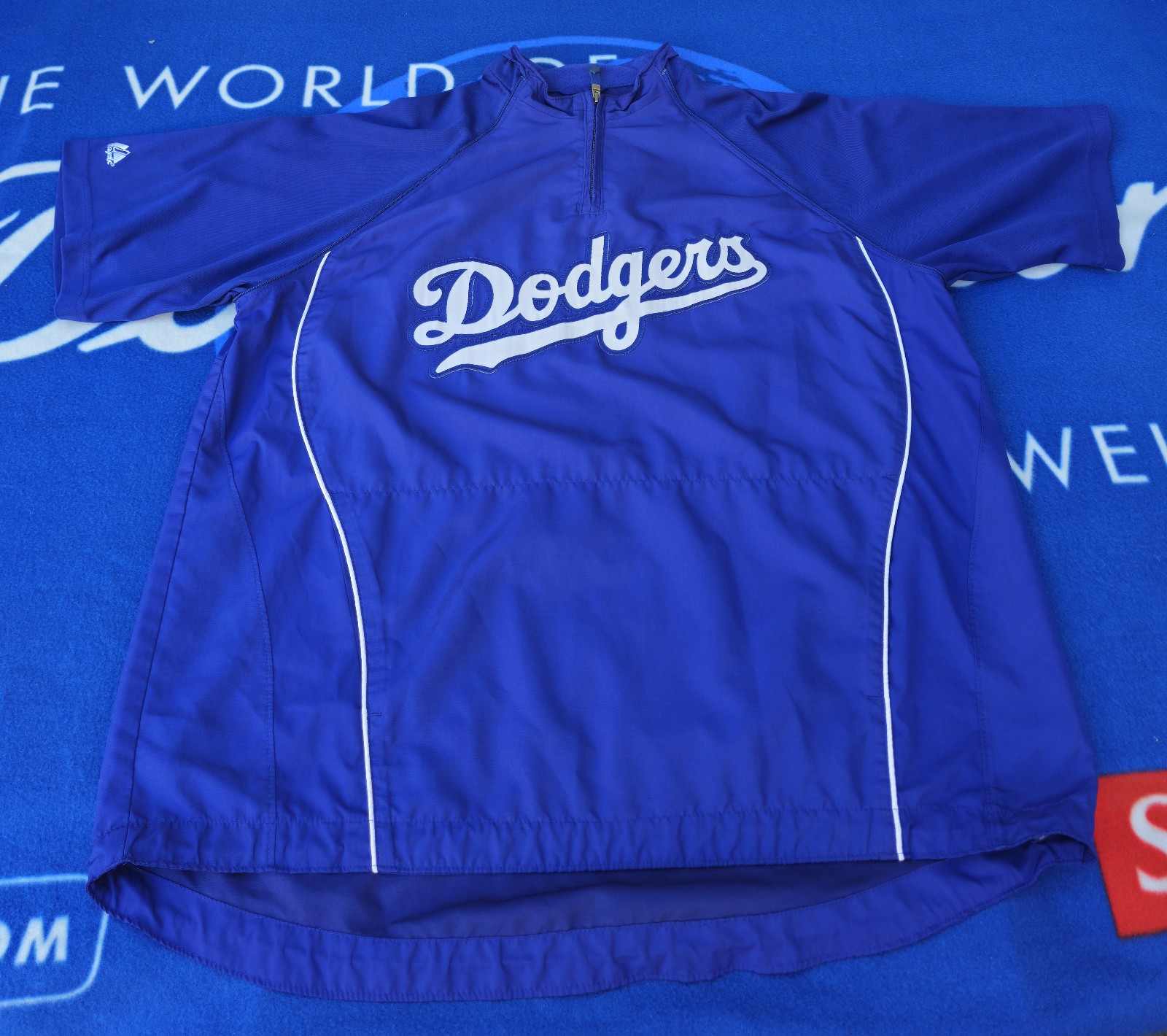 Y2K 2008 Authentic Collection Majestic Los Angeles Dodgers Dugout Warm Up Cool Base Baseball 2-in-1 removable sleeves Blue Jacket is in good pre-owned condition, the jacket does have a small pinhole on one of the sleeves and the size tag has been partially removed. The jacket's measurements are 30.5 inches in length, 33 inches in back length, and 26.5 inches from pit to pit. Please check all measurements and photos to evaluate the jacket's condition.